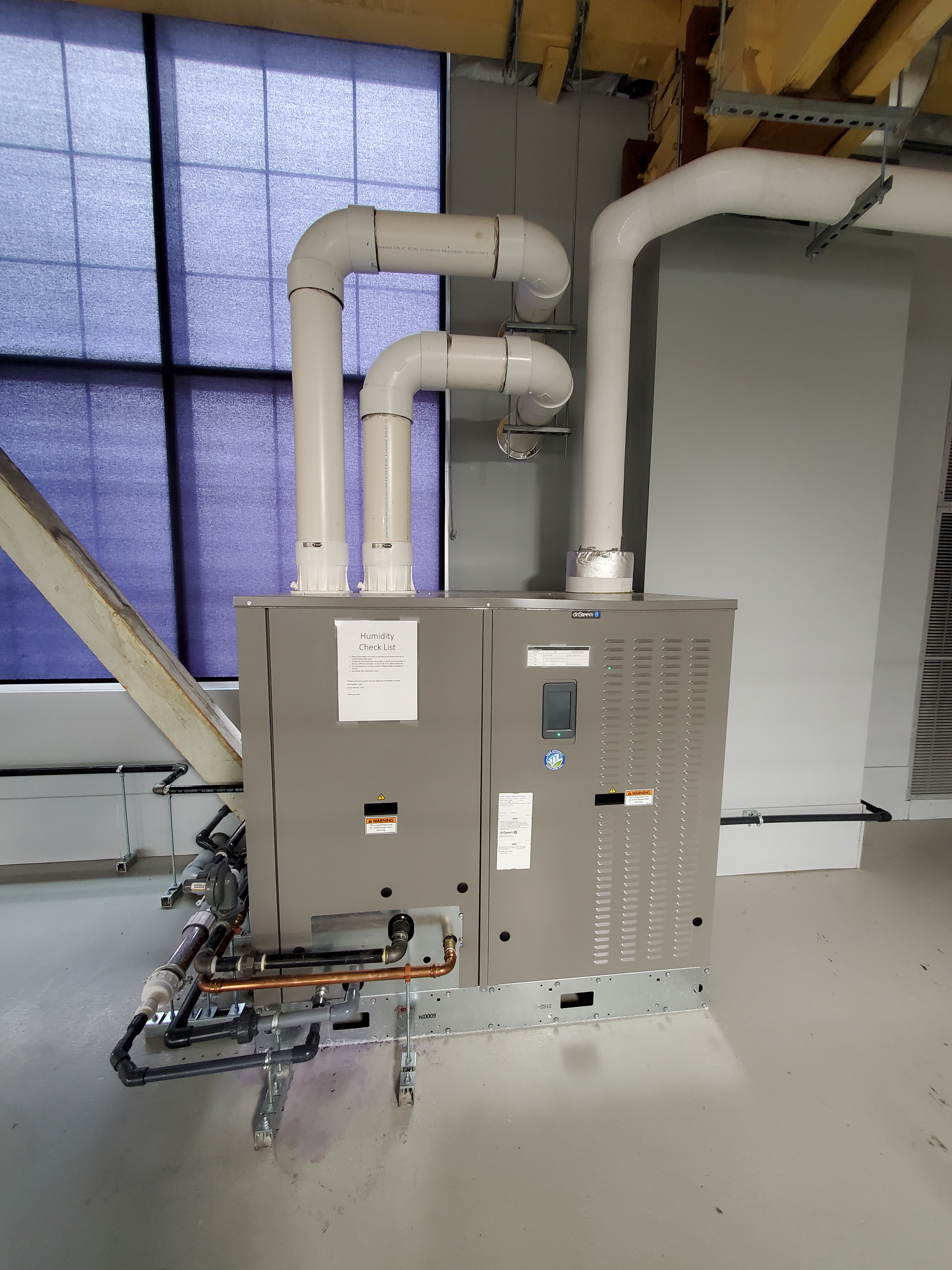 - Existing HVAC ductwork in place, with feasible location for a humidification system steam dispersion grid