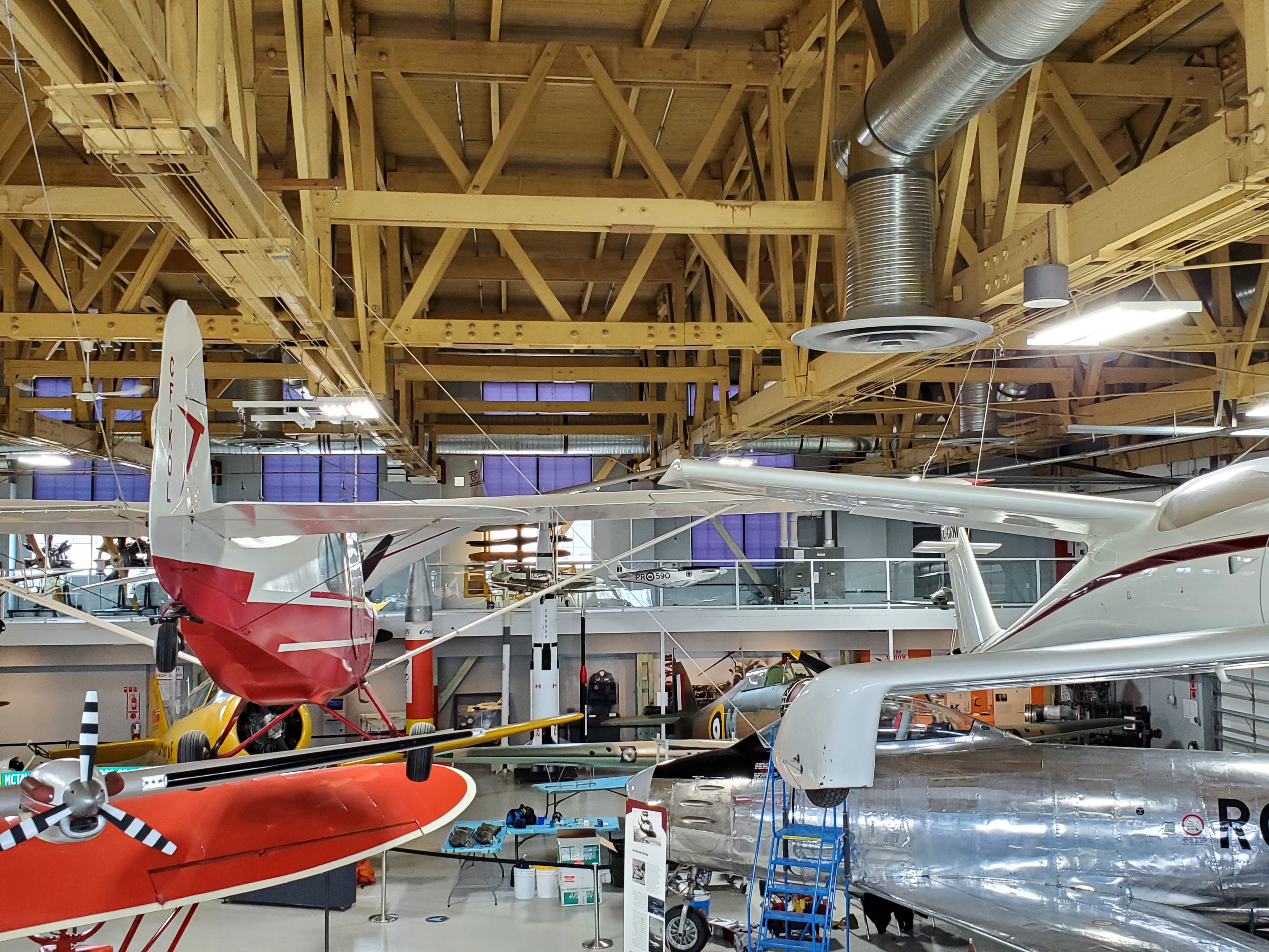 Calgary’s seasonal humidity changes presented hazardous challenges for NE Calgary’s Hangar Flight Museum, an old World War II building. During a structural inspection, dry rot and cracks were discovered in several of the building’s wooden roof trusses. The museum underwent replacement and repair of the damaged beams, an extensive and expensive undertaking. In order to prevent further damage to the new and old structure, the museum operations personnel acknowledged the building would require a significant humidification system to maintain the year-round humidity in the space at a minimum of 35% relative humidity (RH). The humidification system would also be imperative to preserving the museum’s relic airplanes and artifacts.